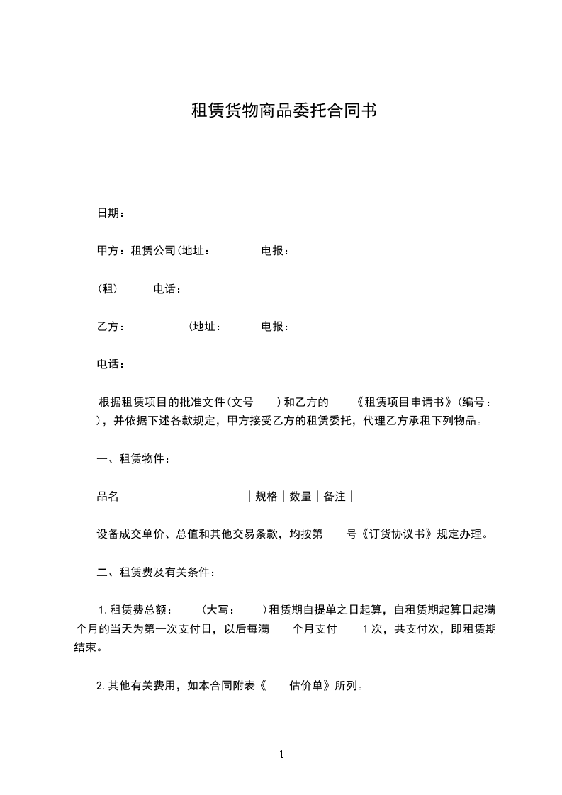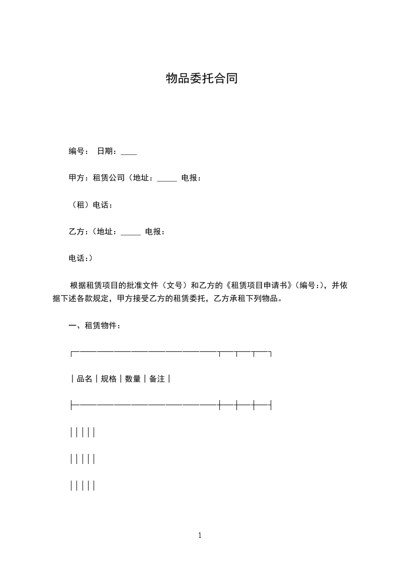 根据租赁项目的批准文件(文号 )和乙方的 《租赁项目申请书》(编号: ),并依据下述各款规定,甲方接受乙方的租赁委托,代理乙方承租下列物品。