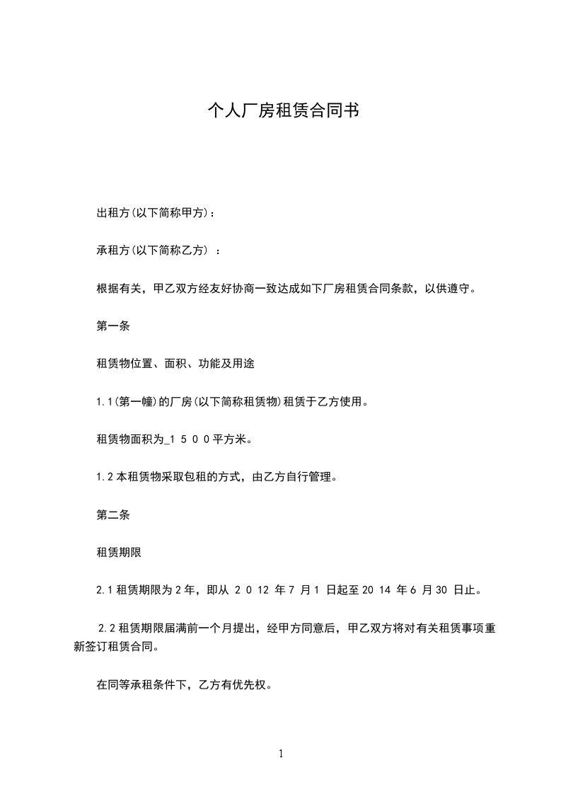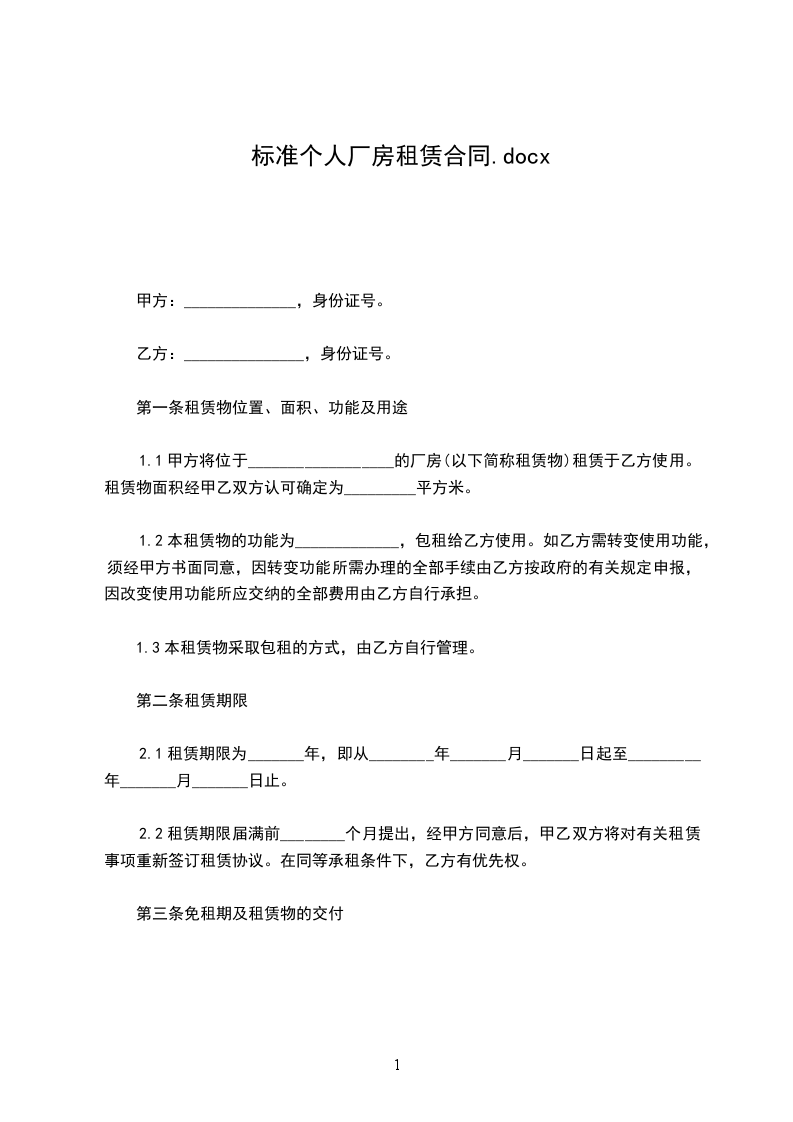 1.1(第一幢)的厂房(以下简称租赁物)租赁于乙方使用。