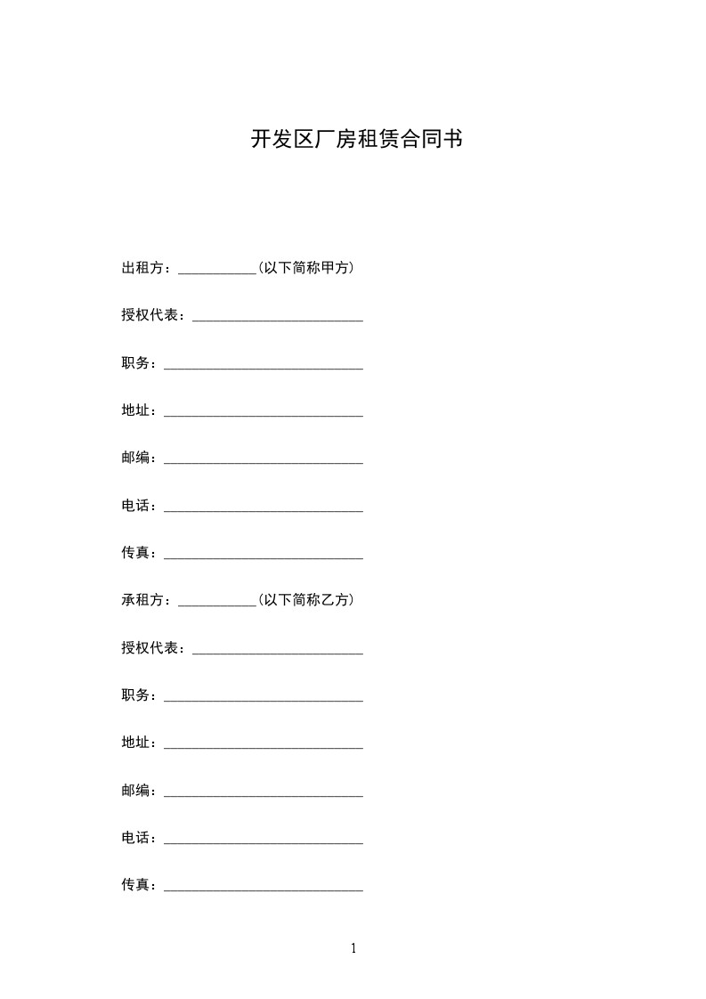 1.1 甲方将位于__________________的厂房(以下简称租赁物)租赁于乙方使用。