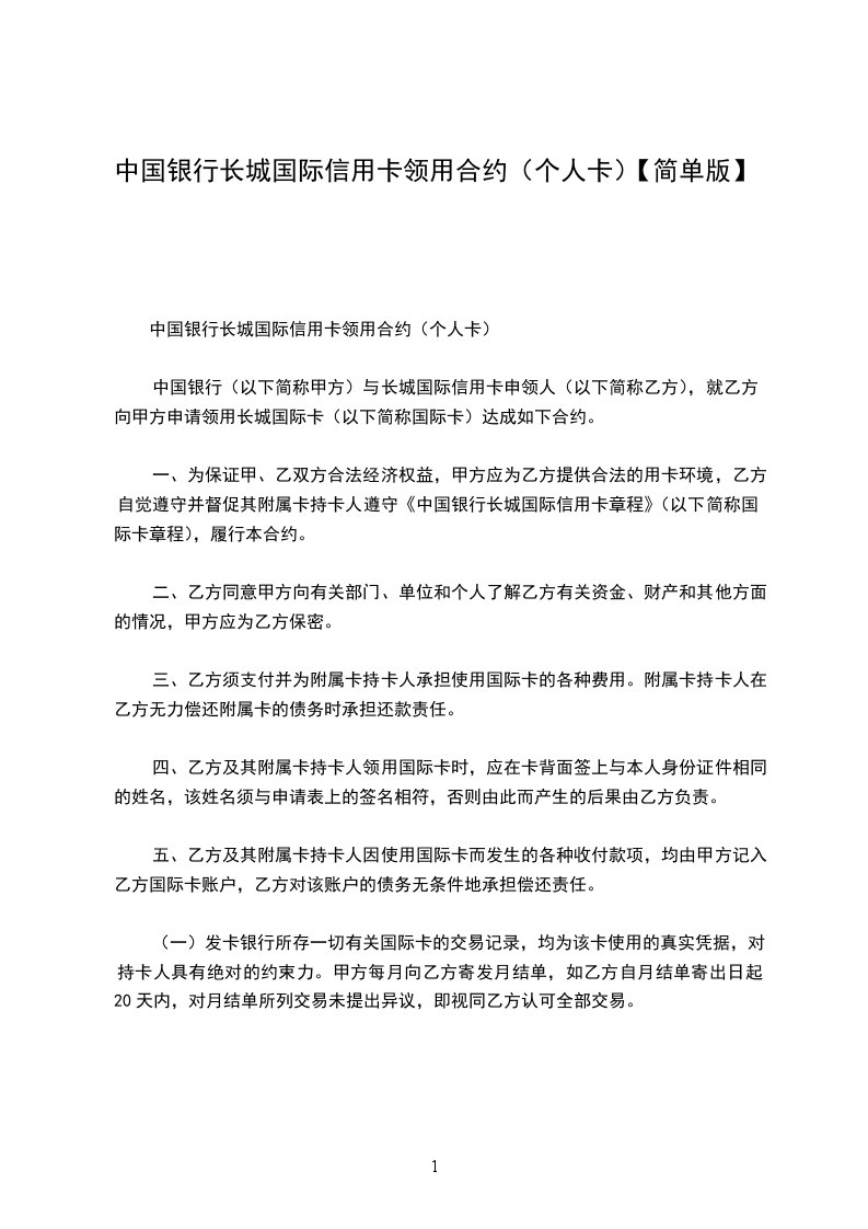 中国银行________分(支)行(以下简称甲方)与长城国航卡(以下简称国航卡)申领人________(以下简称乙方)就乙方向甲方申领使用国航卡有关事宜签订如下合约: