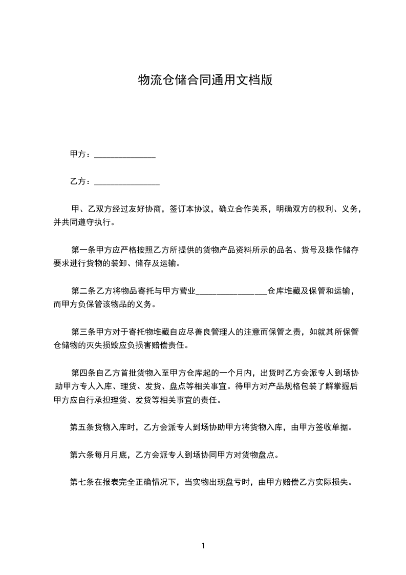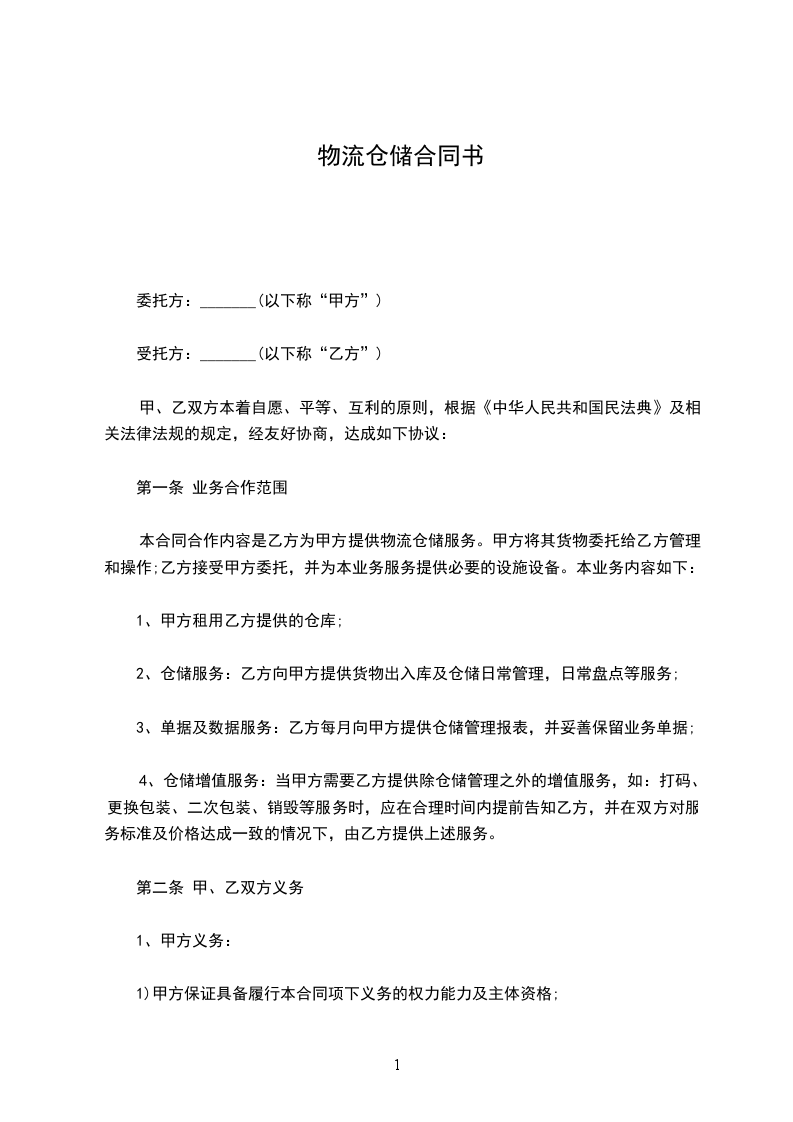 物流仓储合同范本是物流行业中用于规范仓储服务与费用等相关事宜的重要文件。它明确了双方的权利与义务,涵盖仓储条件、保管期限、费用结算等方面内容,为物流仓储业务的顺利开展提供了坚实的法律保障,是物流企业与仓储方之间合作的重要依据。