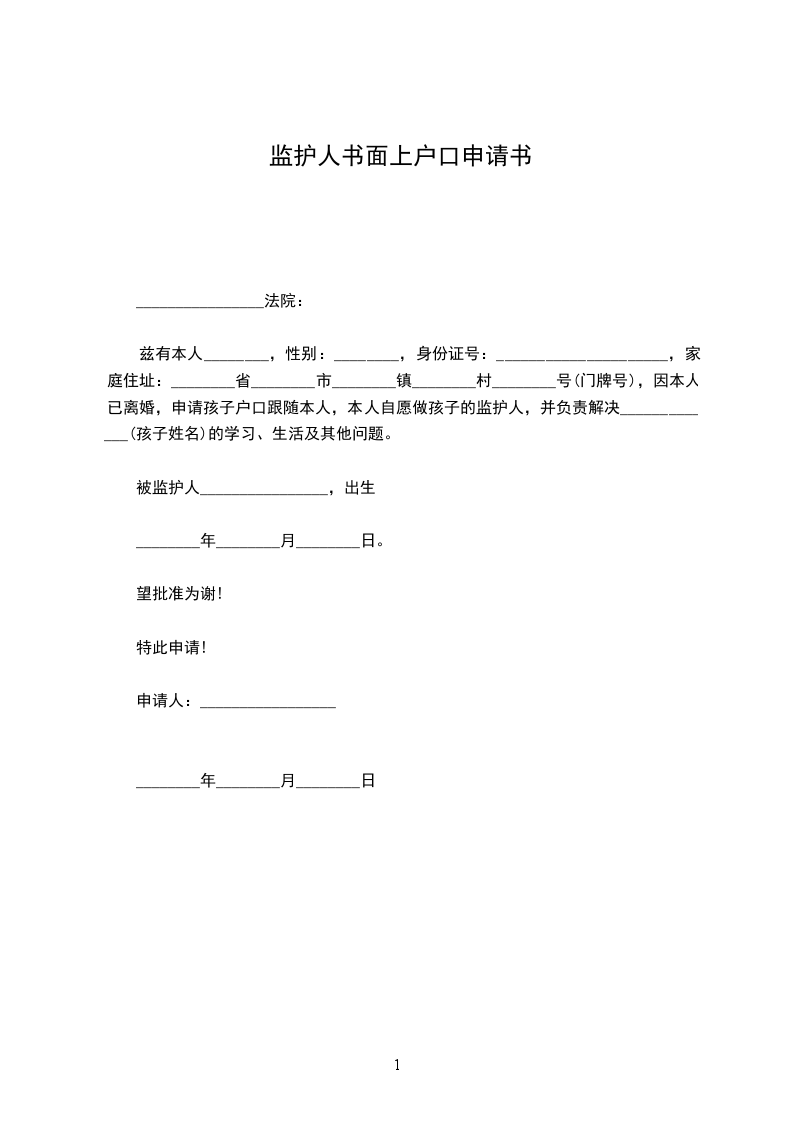 篇1 《监护人申请书》