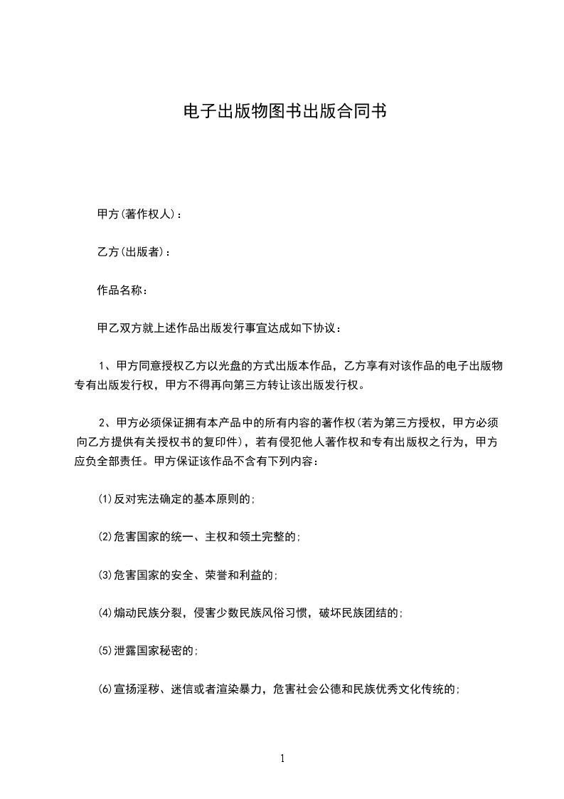 1.甲方同意授权乙方以光盘的方式出版本作品,乙方享有对该作品的电子出版物专有出版发行权,甲方不得再向第三方转让该出版发行权。