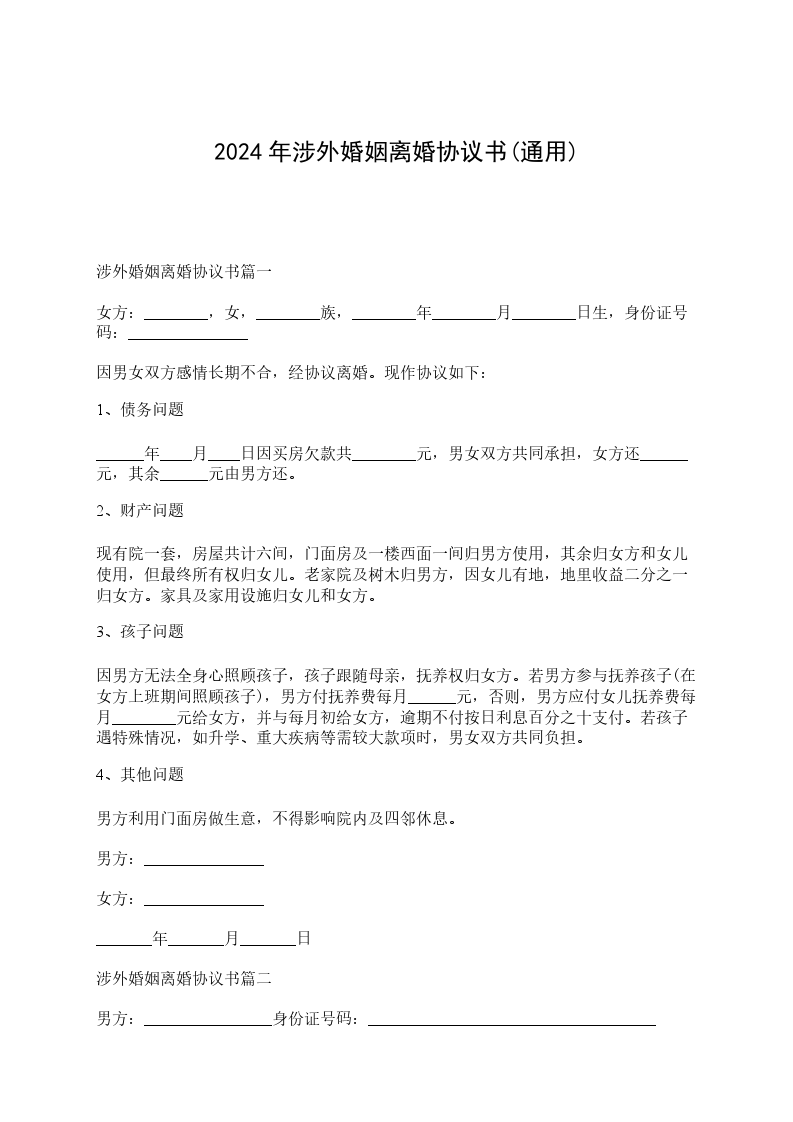 甲方(男方):_________,男,_____族,__________年_____月_____日出生,美国国籍,护照号码:_______________________