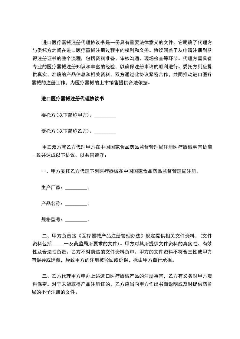 2、甲方负责按"医疗器械注册管理办法"提供注册资料并附有中文译本。甲方承诺对所提供证明文件的真实性、有效性及合法性负完全的法律责任(具体要求见医疗器械注册管理办法)。