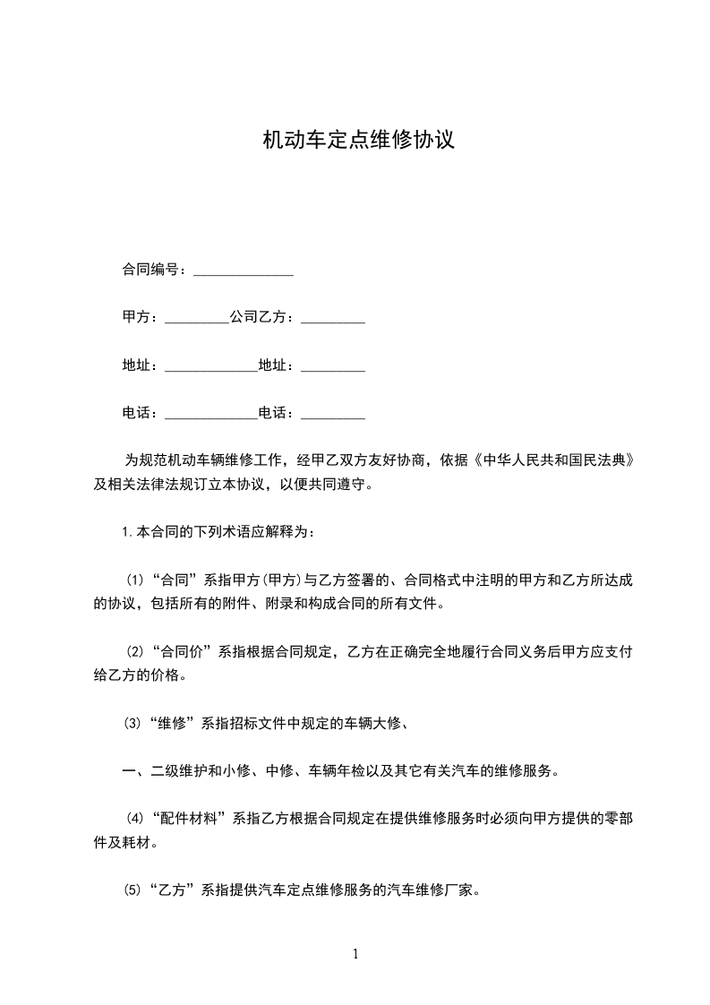 为规范机动车辆维修工作,经甲乙双方友好协商,依据《中华人民共和国民法典》及相关法律法规订立本协议,以便共同遵守。