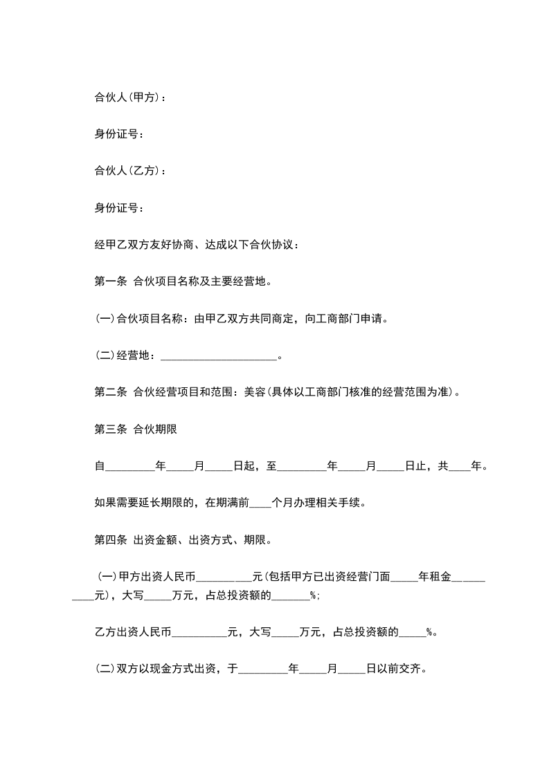 第二条 合伙经营项目和范围:美容(具体以工商部门核准的经营范围为准)。