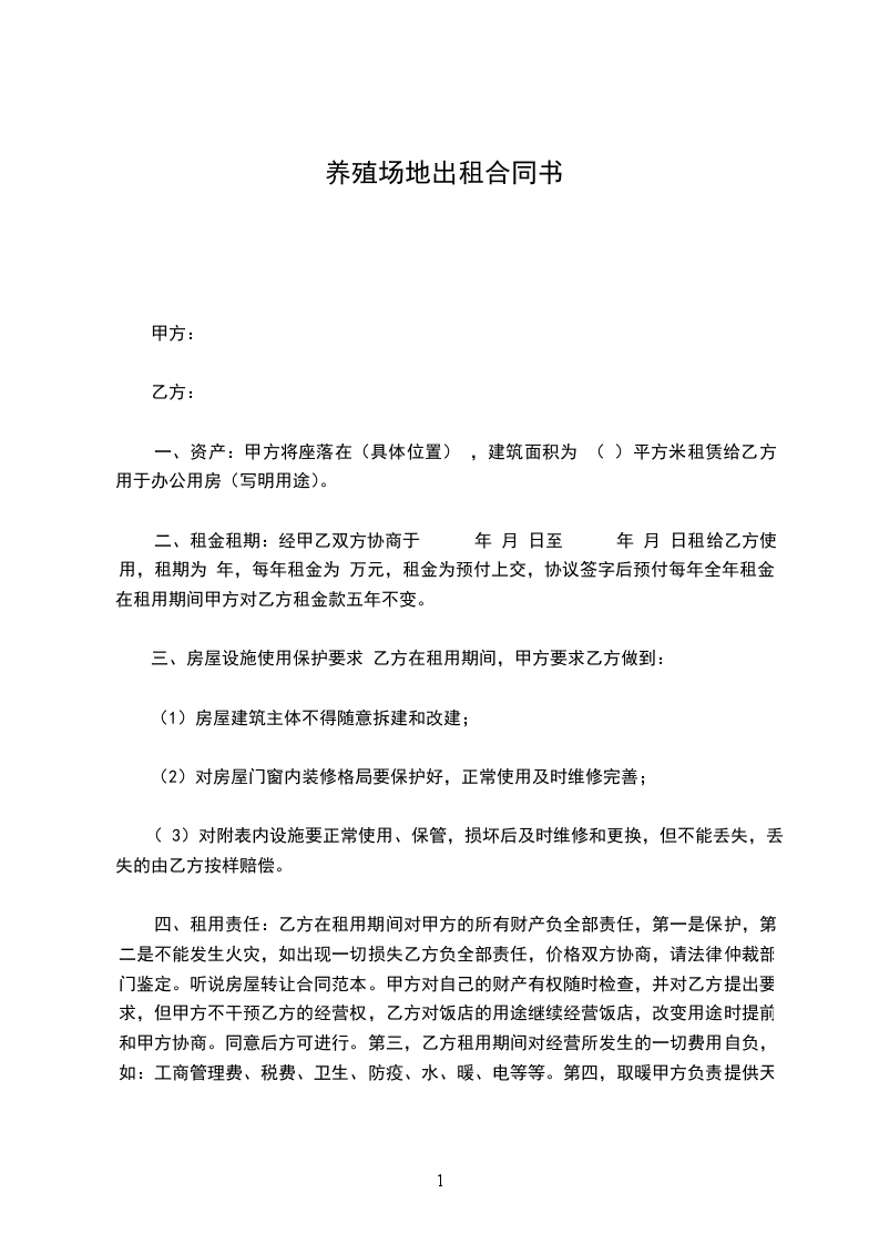 篇1《养殖场出租合同》