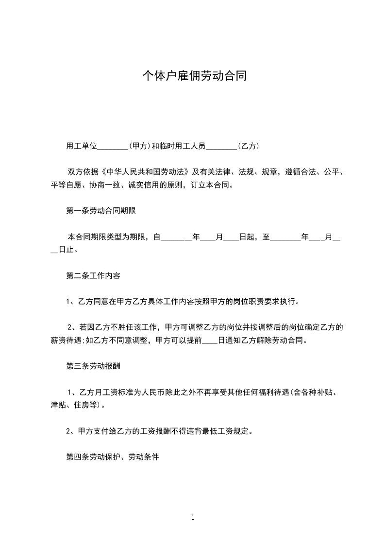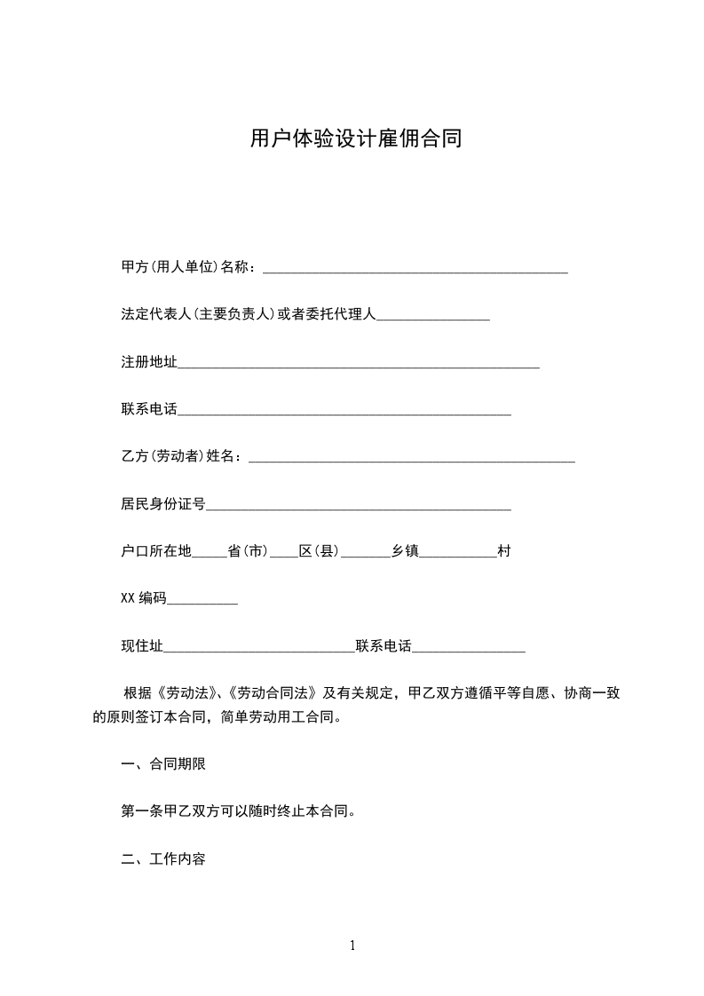 第一条劳动合同期限: