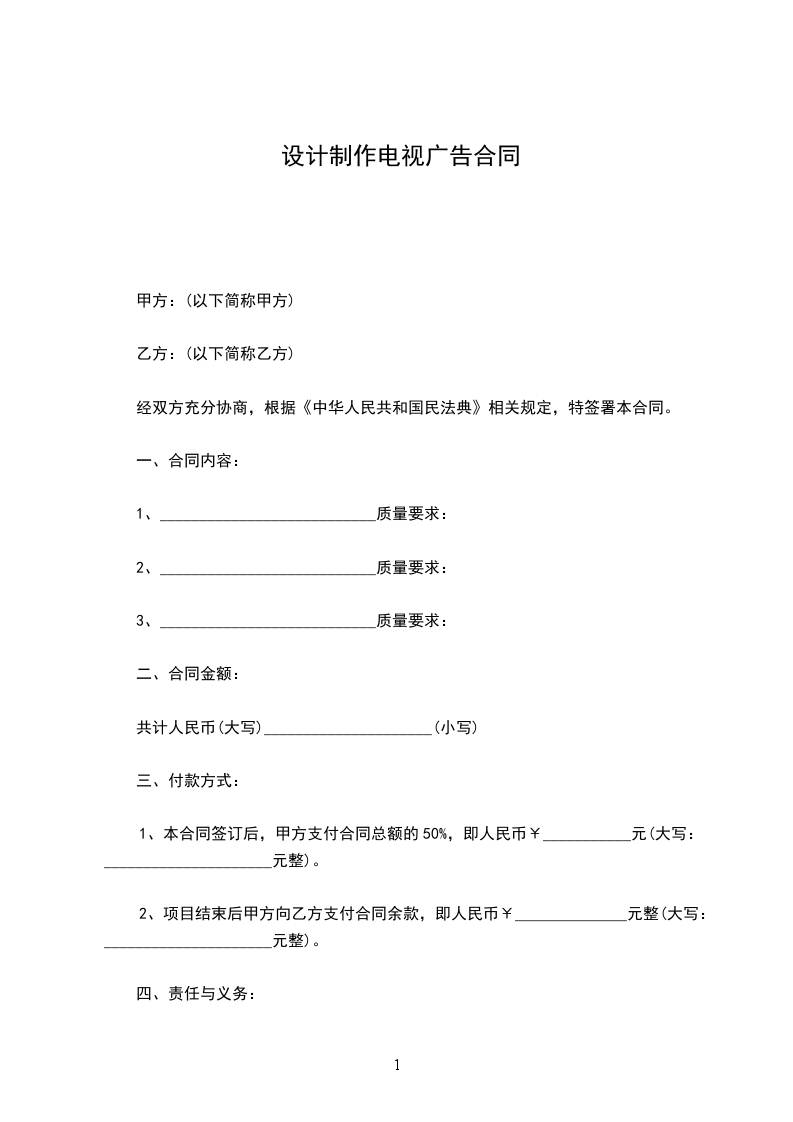 一、甲方委托乙方于________年______月______日至________年_____月______日期间制作_________产品电视广告__________篇____条,时间长度为____秒;________产品电视广告__________篇____条,时间长度为____秒;_________产品电视广告___________篇_____条,时间长度为____秒。