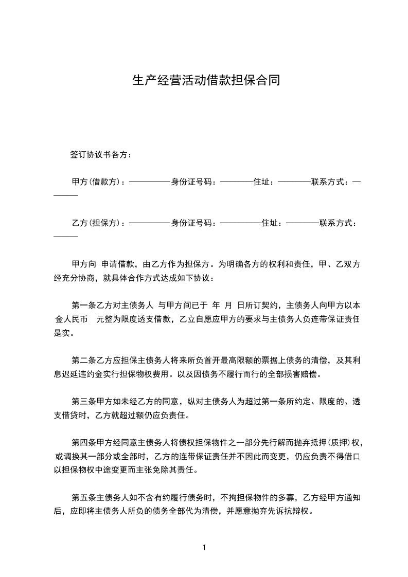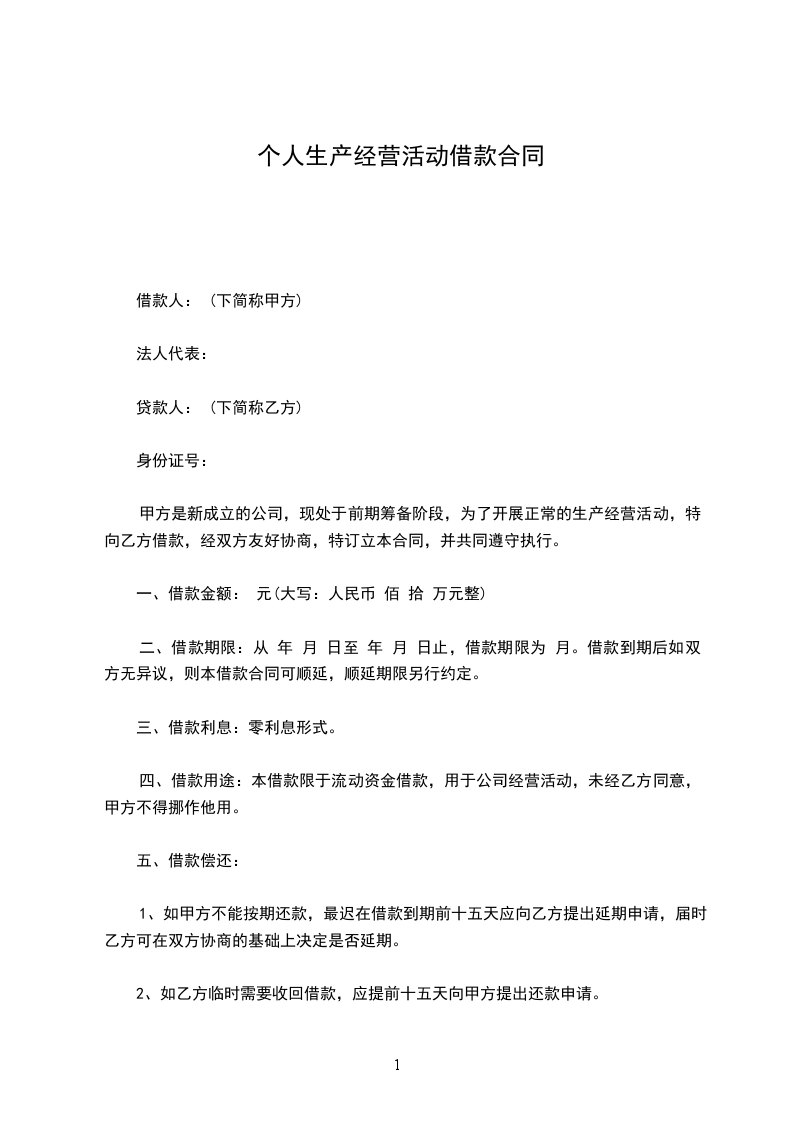 甲方为进行生产经营活动,特向乙方借款,经双方协商,特订立本合同,以便共同遵守。