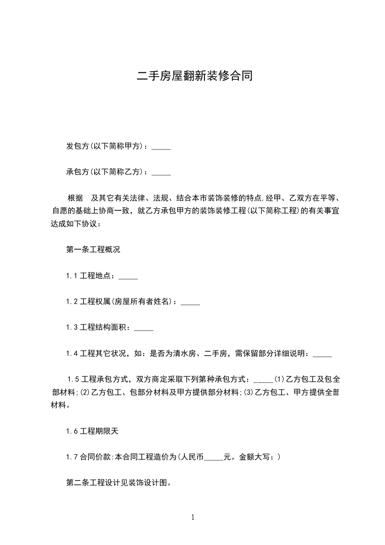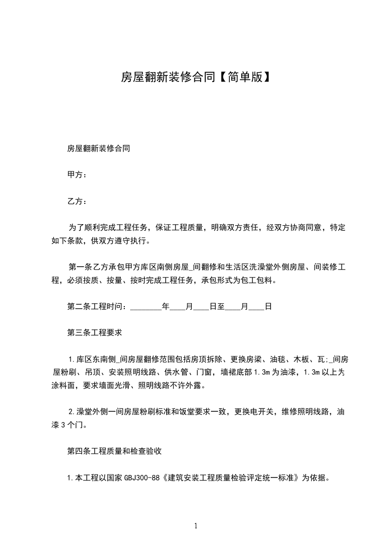 篇1《老房翻新装修合同》