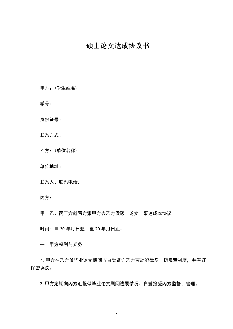 甲、乙、丙三方就丙方派甲方去乙方做硕士论文一事达成本协议。