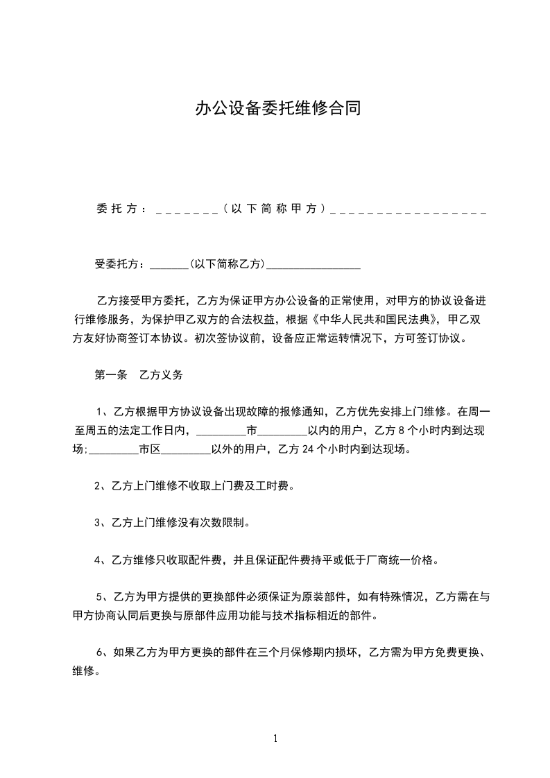1、交货期:乙方按合同约定的时间完成全部维修项目,并交付甲方使用;2、质保期:自签署最终验收报告之日起_____个月;