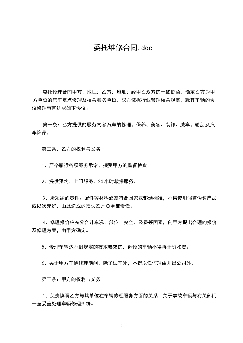 1、乙方承接甲方维修工作,按本合同的约定完成各项内容,经验收合格后交付甲方。
