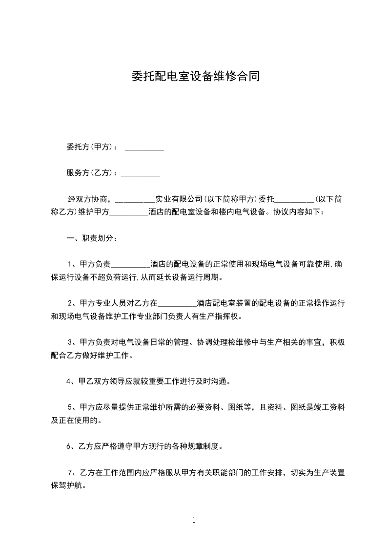 2、维修检调期间如因乙方原因发生设备、人身等事故由乙方承担赔偿责任。