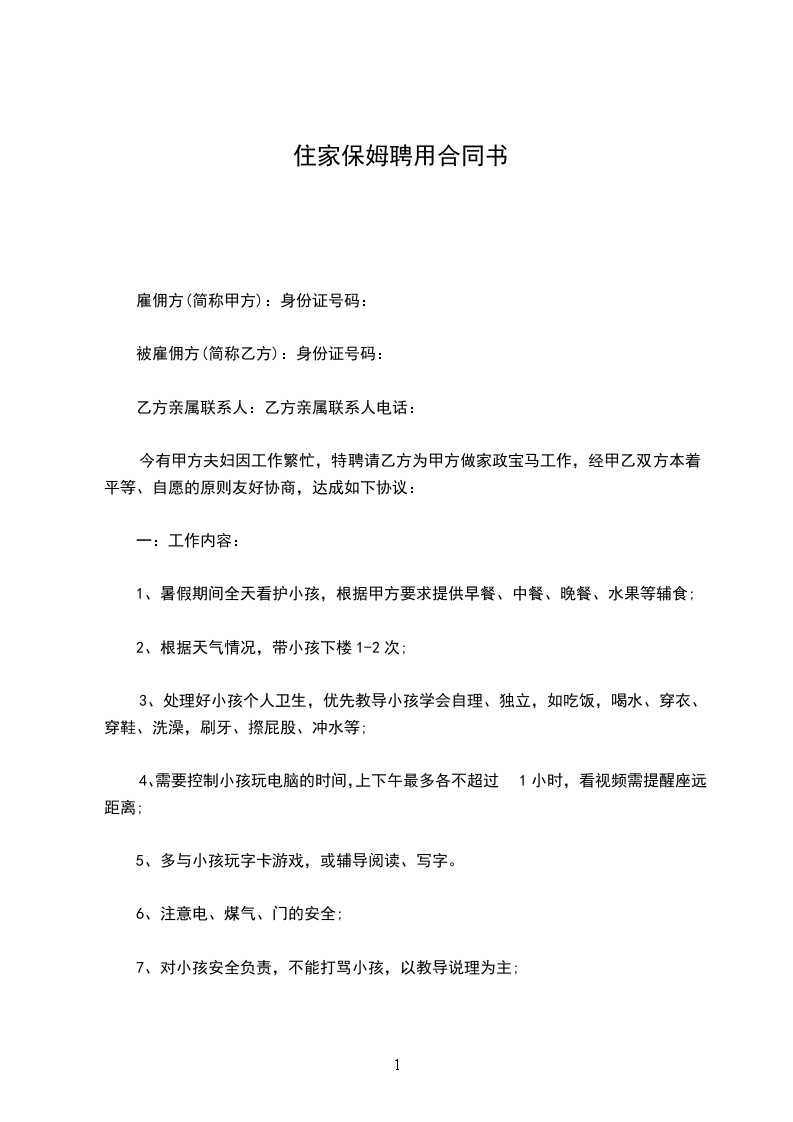 1、暑假期间全天看护小孩,根据甲方要求提供早餐、中餐、晚餐、水果等辅食;