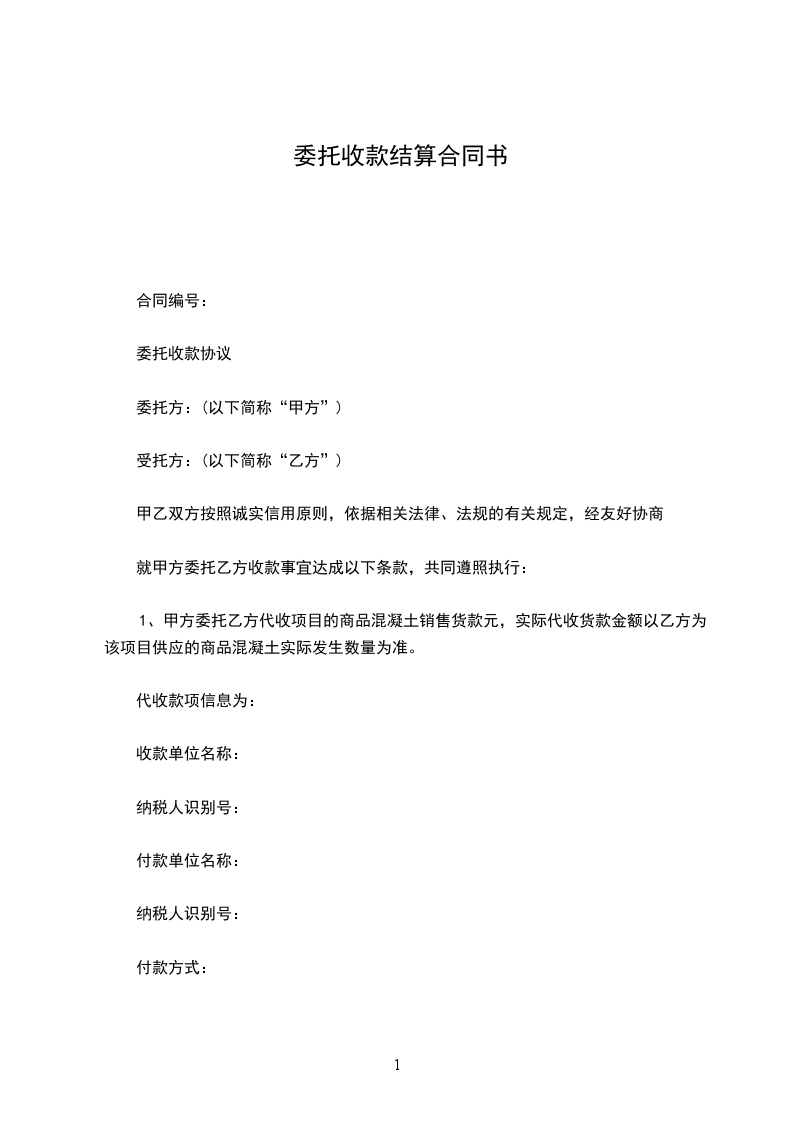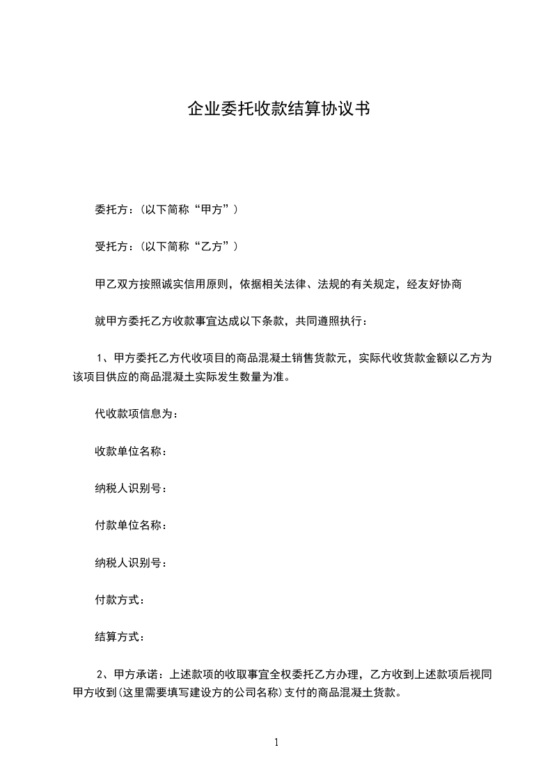 1、甲方委托乙方代收项目的商品混凝土销售货款元,实际代收货款金额以乙方为该项目供应的商品混凝土实际发生数量为准。