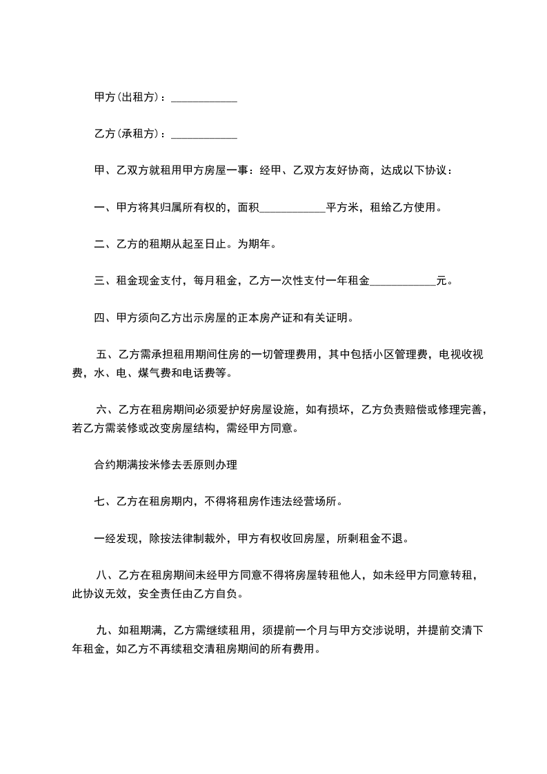甲、乙双方就房屋租赁事宜,达成如下协议: