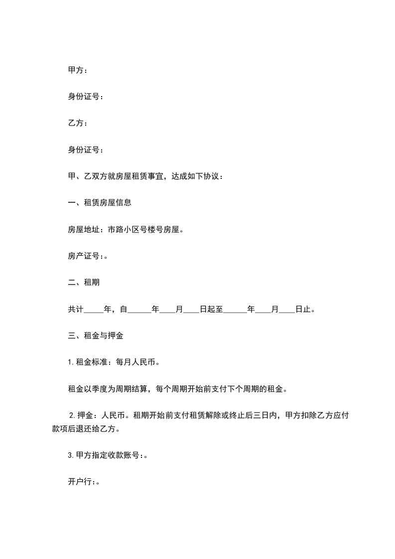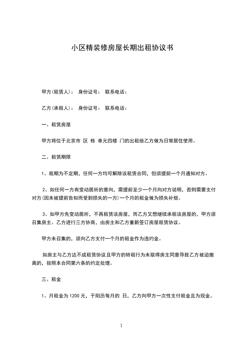 一、甲方将位于市街道小区号楼号的房屋出租给乙方居住使用,租赁期限自______年____月____日至______年____月____日,计_____个月。