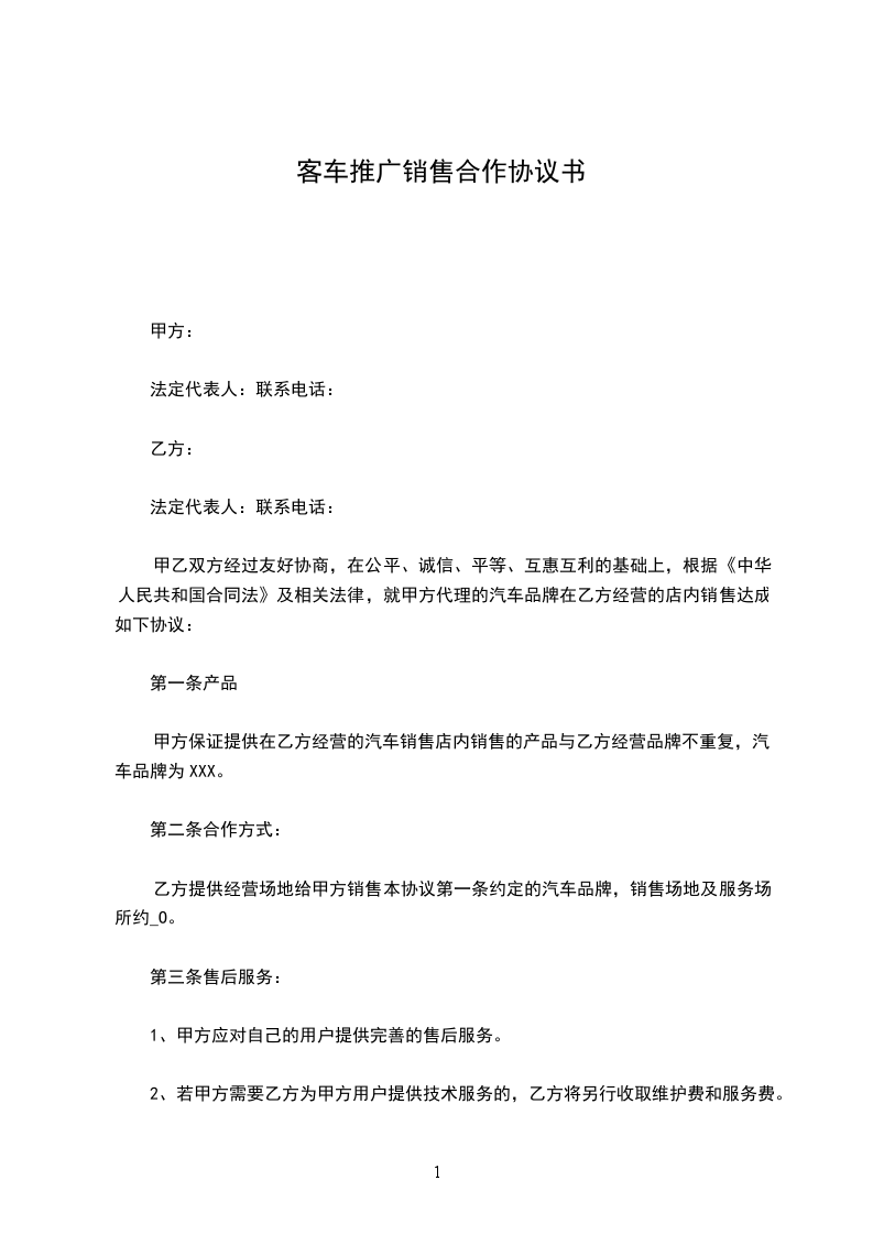 4.积极做好产品的售后服务工作,甲方年销售乙方产品达_________辆以上,可申请在代理区域内设立特约维修站。