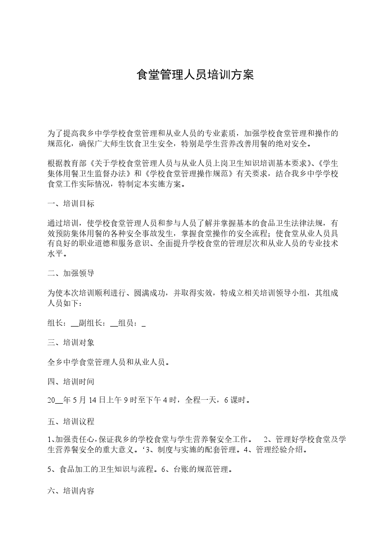 食堂食品安全培训工作计划旨在提升食堂工作人员的食品安全意识与操作规范。通过定期组织培训课程,包括食品卫生知识讲解、烹饪安全要点等,确保食堂食品从采购到制作再到售卖的全过程都符合安全标准,为师生的饮食健康提供坚实保障。