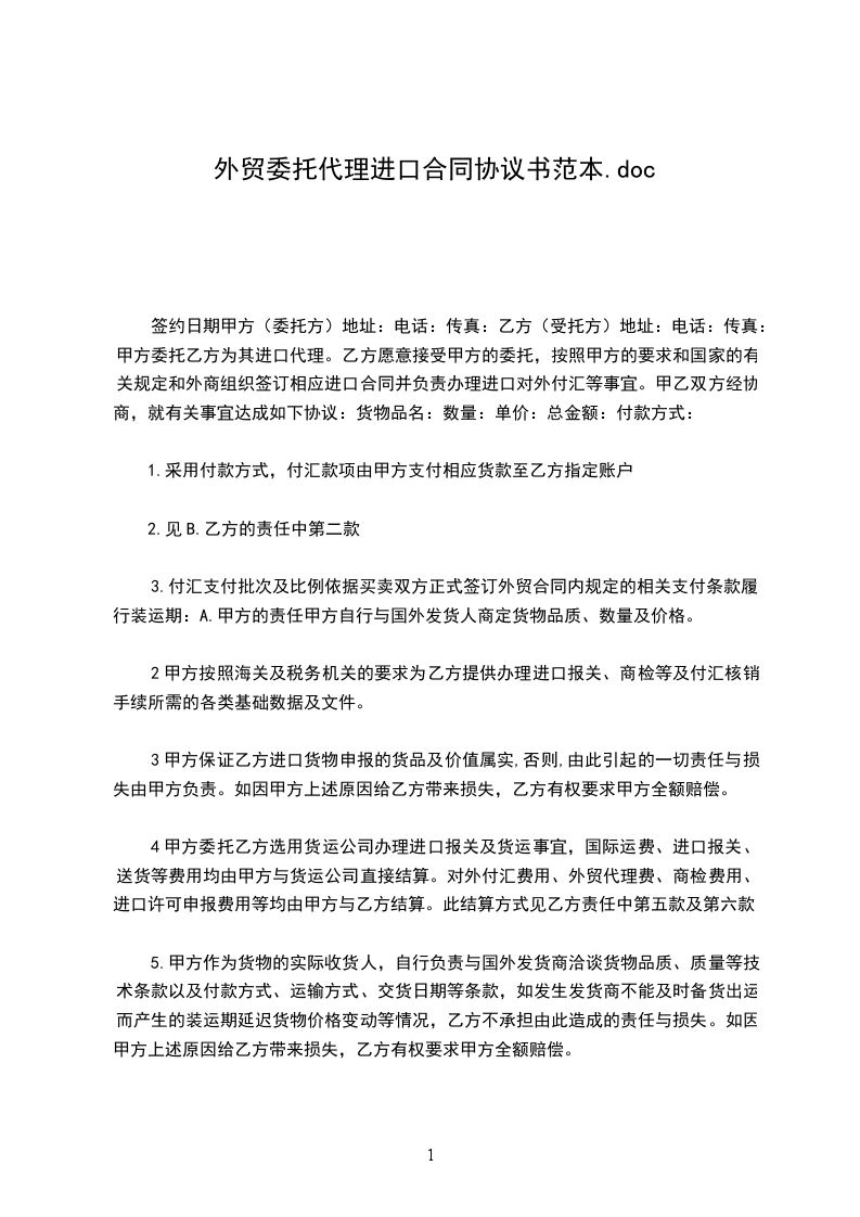 1. 甲方委托乙方代理以下外贸业务:(详细列出委托的具体业务范围,如货物进出口、报关报检、运输安排等)