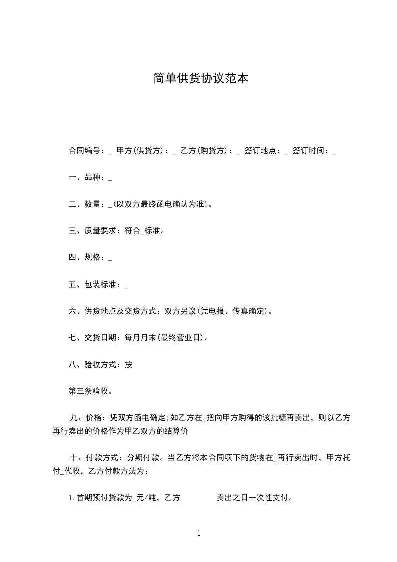 想要一份简单的供货合同范本模板?这里为你提供详细指引。在商业交易中,供货合同是保障双方权益的重要文件。一份简单的供货合同范本模板能让你轻松起步。它涵盖了供货的基本信息、价格、交货时间等关键内容,帮助你规范交易流程,避免潜在纠纷。快来获取吧!