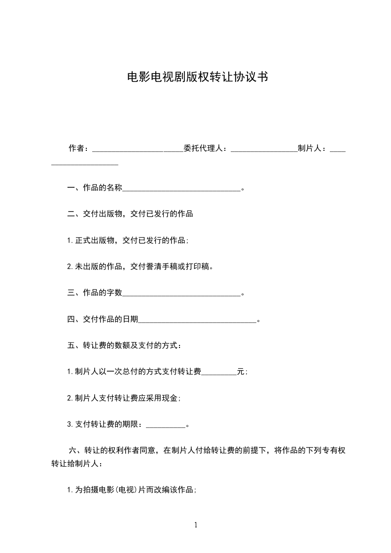 作者同意,在制片人付给转让费的前提下,将作品的下列专有权转让给制片人: