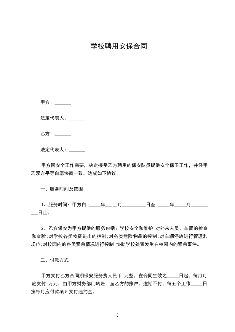 篇1《学校保安聘用合同》