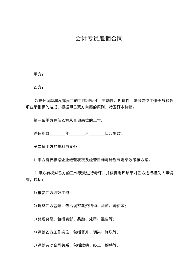 2.1乙方在甲方公司担任兼职会计工作。乙方须按照通常会计职责及甲方确定的岗位责任,完成工作。