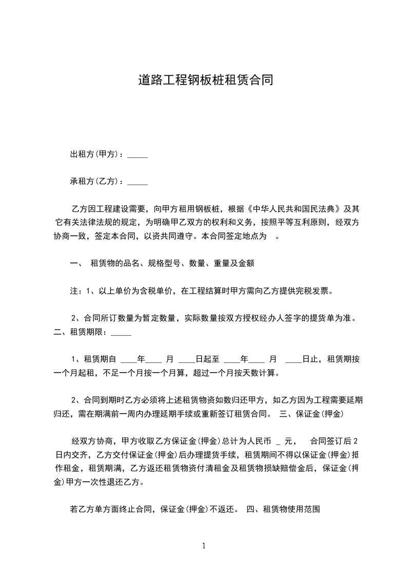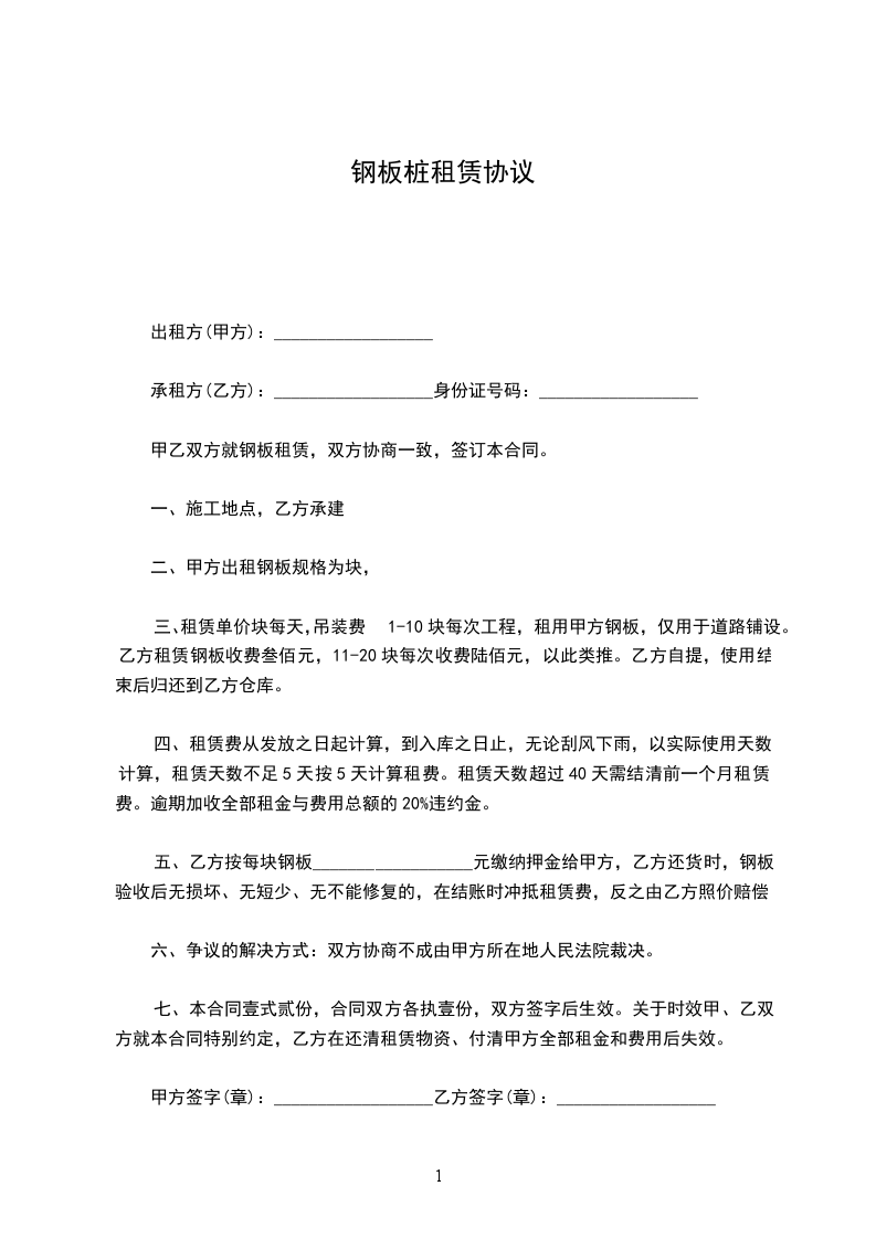 五、乙方按每块钢板__________________元缴纳押金给甲方,乙方还货时,钢板验收后无损坏、无短少、无不能修复的,在结账时冲抵租赁费,反之由乙方照价赔偿。