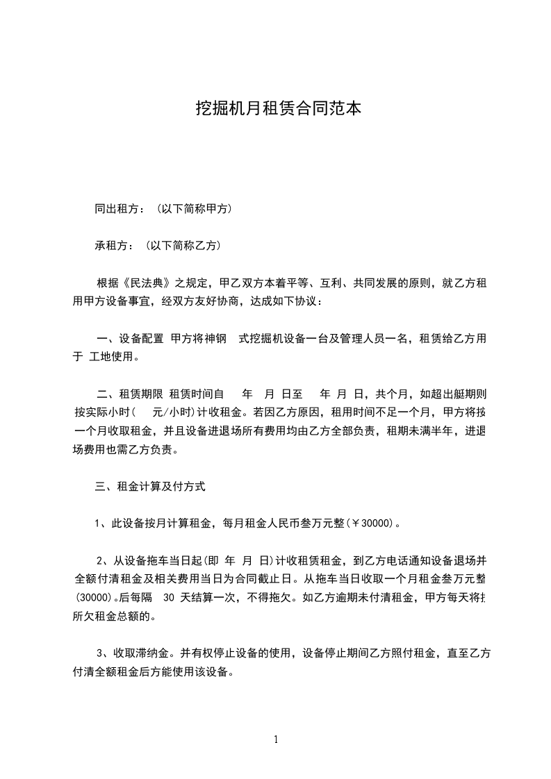 1、此设备按月计算租金,每月租金人民币叁万元整(¥30000)。