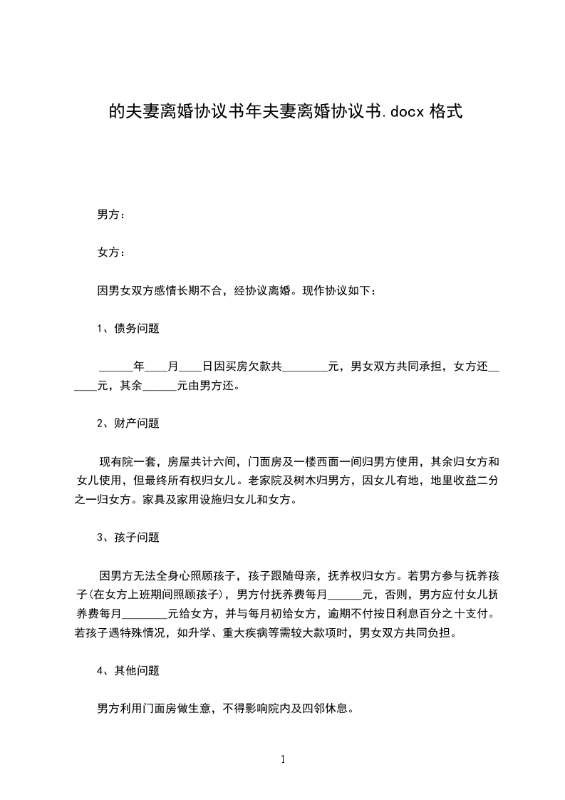 甲乙双方经自由恋爱后,于__________年__________月领取结婚证,婚后于__________年__________月生一女,取名__________。现甲乙双方因夫妻感情破裂,自愿同意协议离婚,并达成以下协议,以资双方共同遵守。
