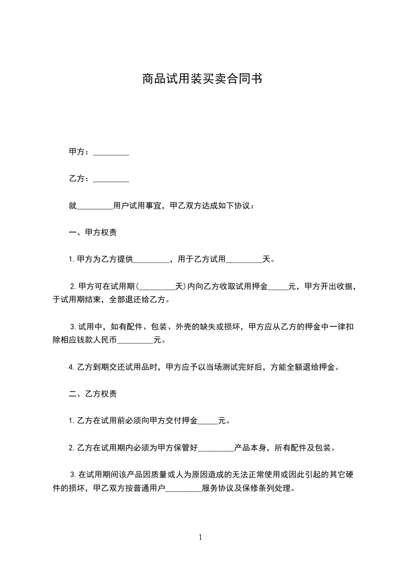 1.乙方在试用前必须向甲方交付押金_____元。