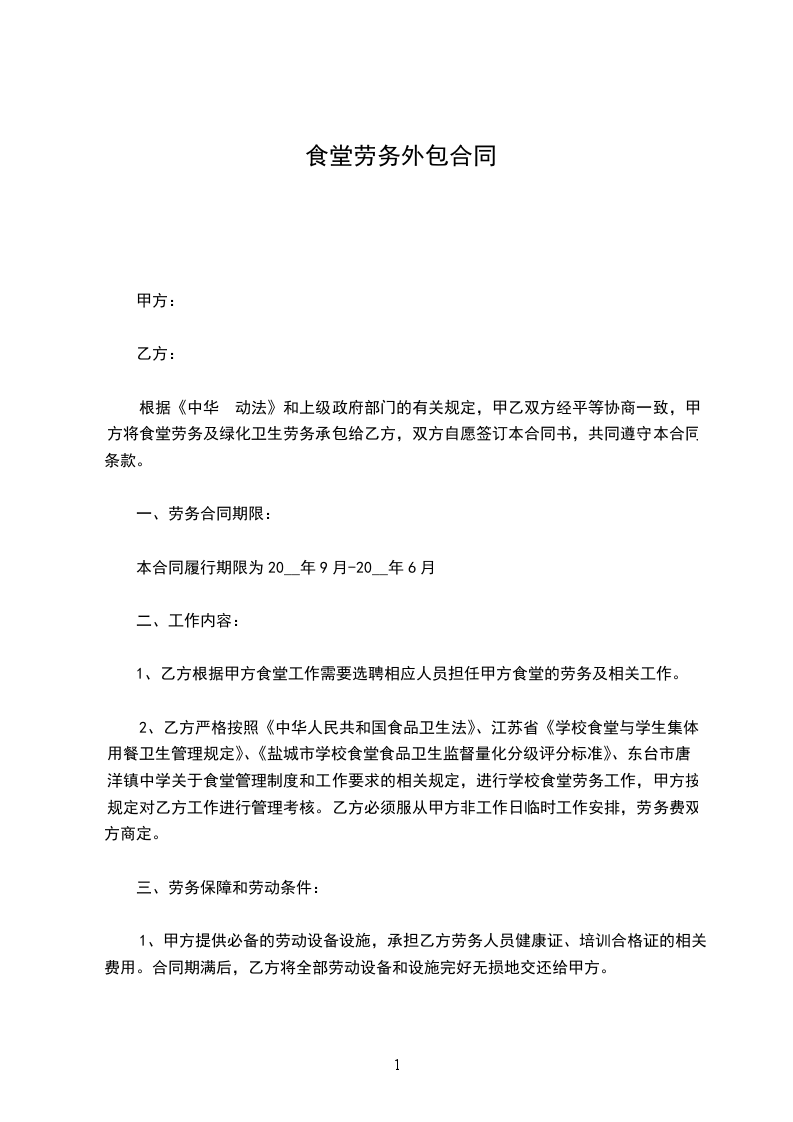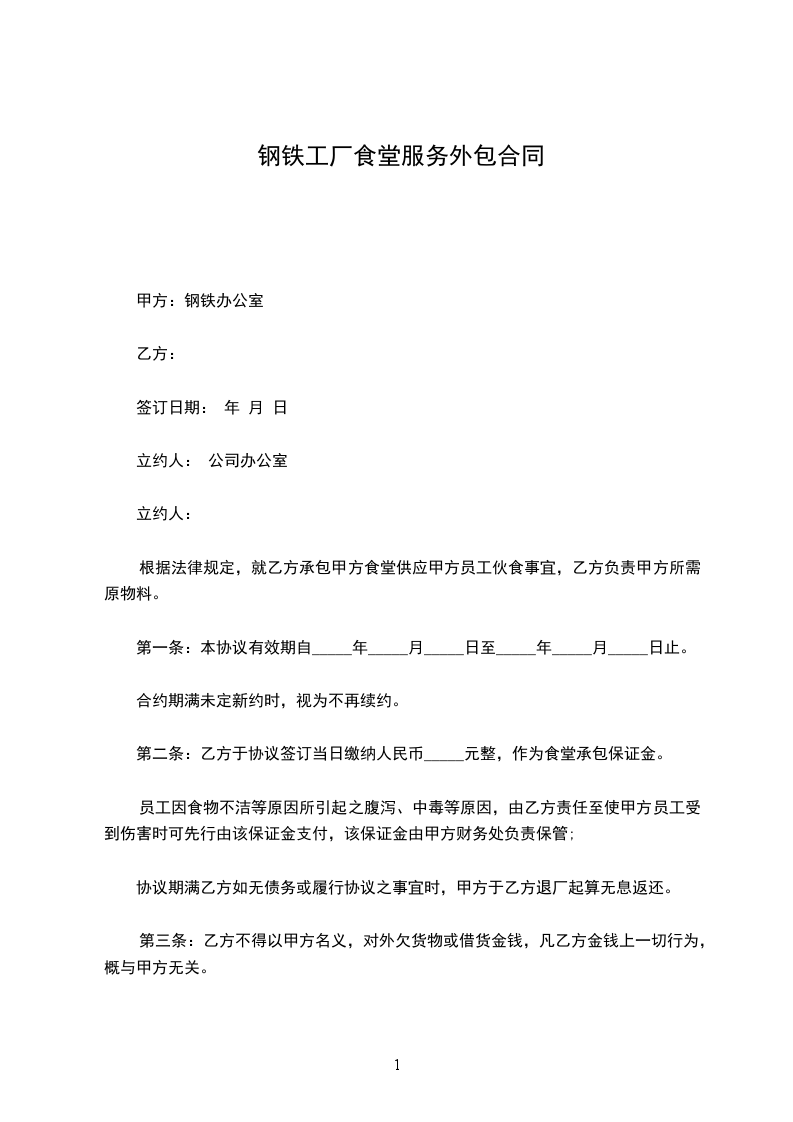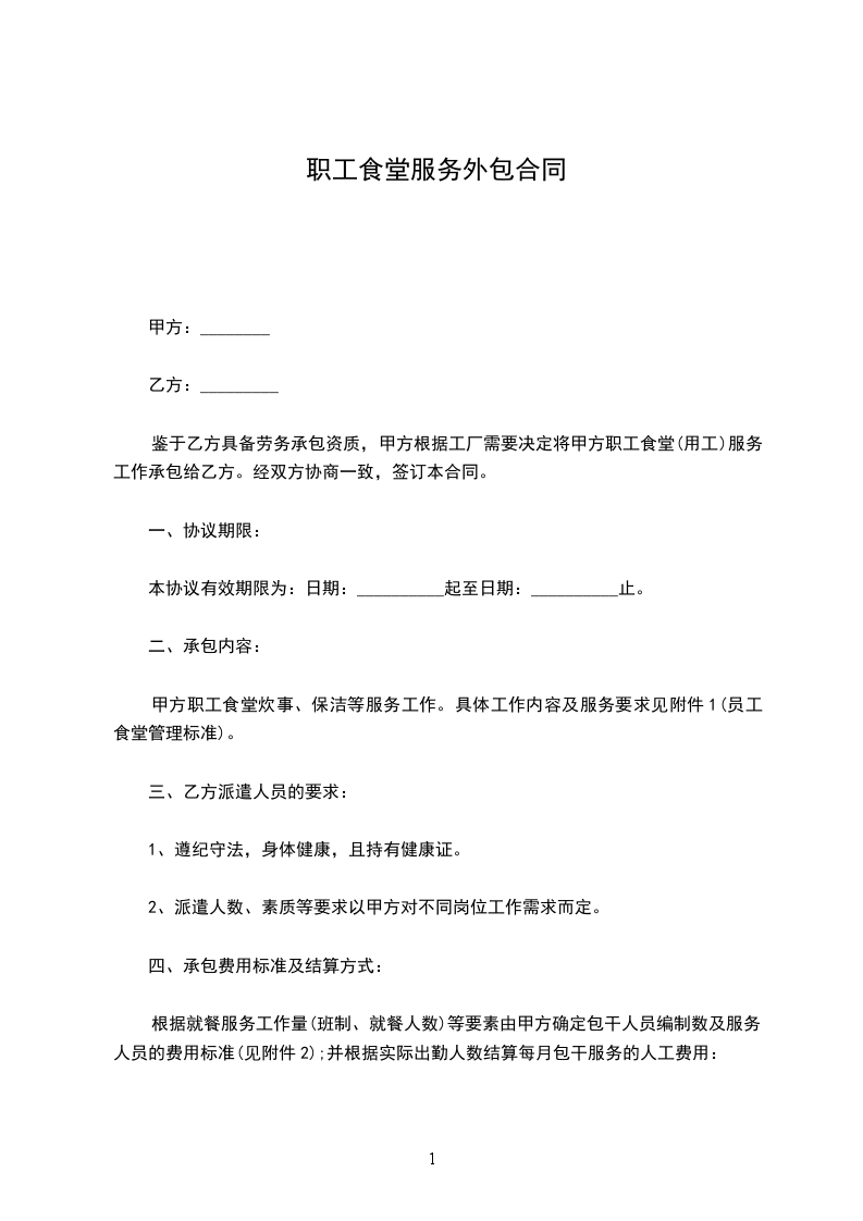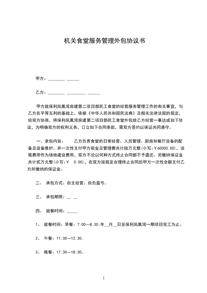 经过协商甲方将食堂的服务管理外包给乙方,为明确双方的权利义务,订立如下合同条款,需签约双方依法共同遵守。