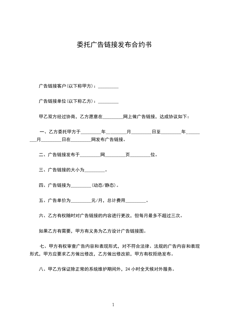 一、乙方委托甲方于_________年_________月_________日至_________年_________月_________日在_________网发布广告链接。
