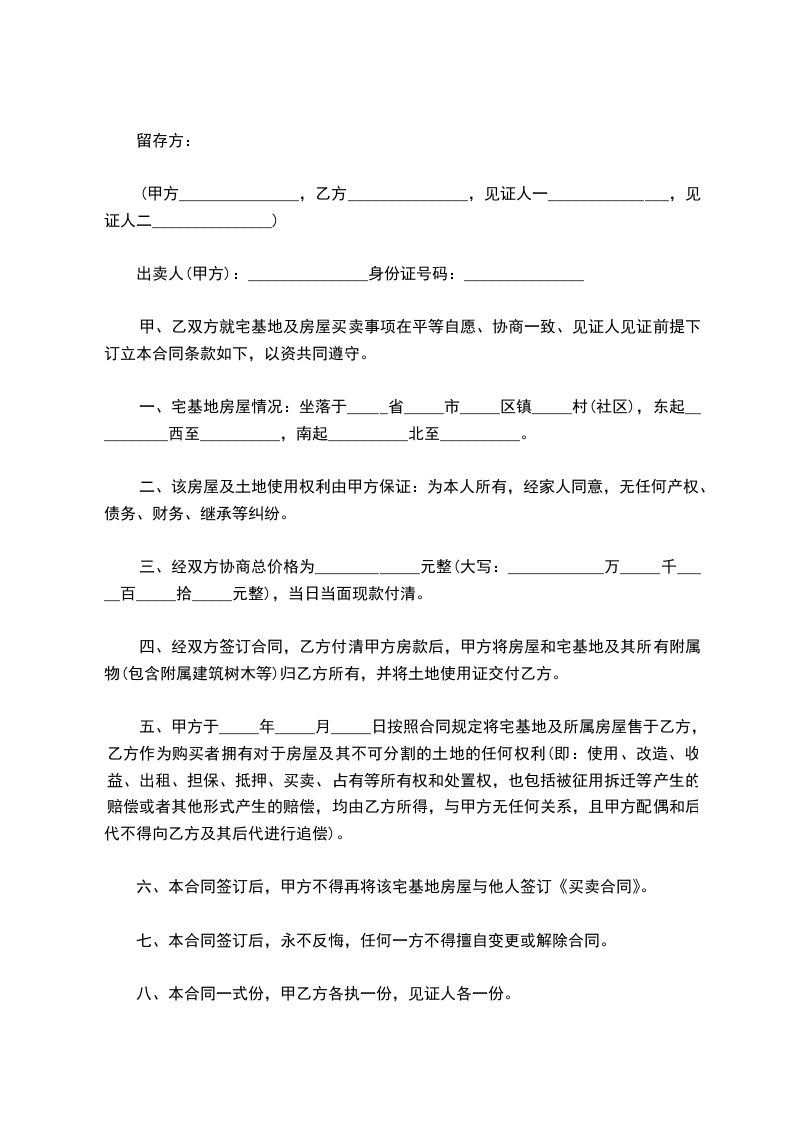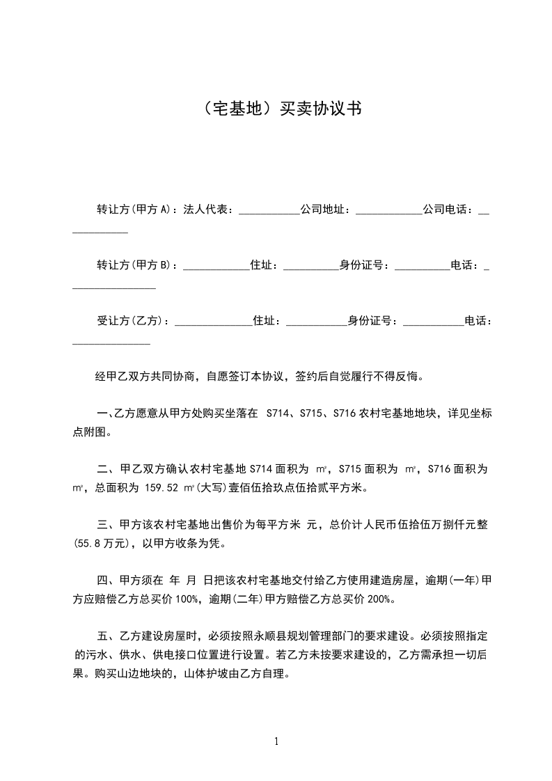 五、违约责任本协议签订后,任何一方均不得反悔。