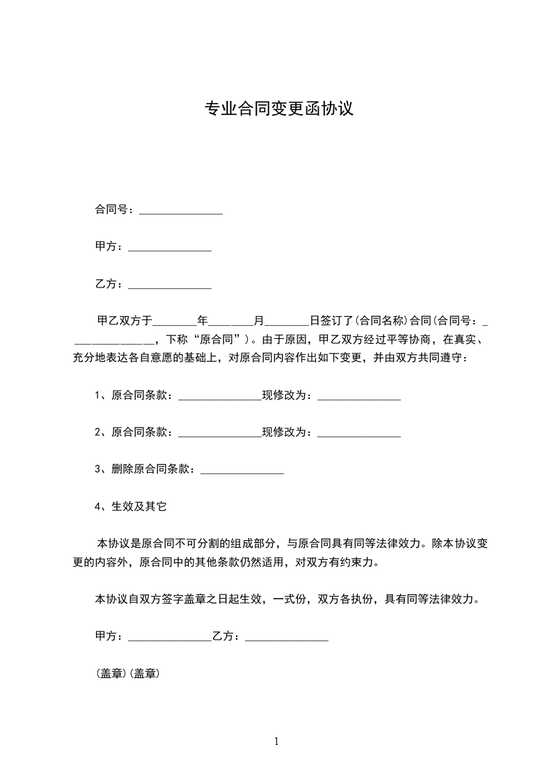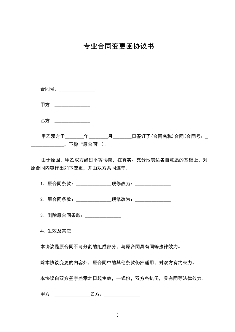 由于原因,甲乙双方经过平等协商,在真实、充分地表达各自意愿的基础上,对原合同内容作出如下变更,并由双方共同遵守: