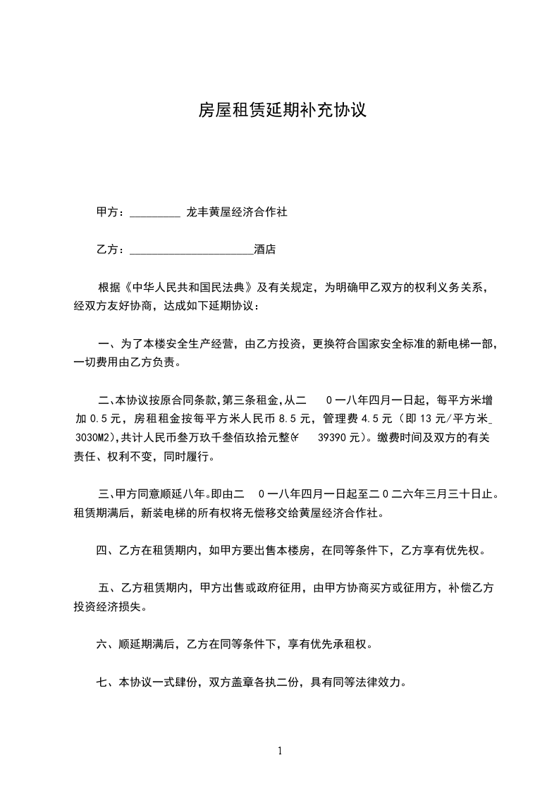 _________日签订的房屋租赁合同(以下简称租赁合同),为进一步明确双方的权利义务,双方达成如下补充协议: