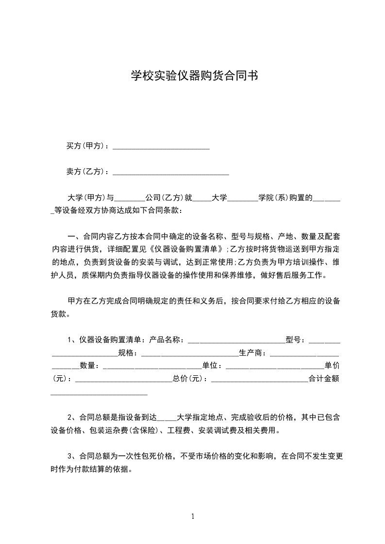 大学(甲方)与________公司(乙方)就_____大学________学院(系)购置的________等设备经双方协商达成如下合同条款: