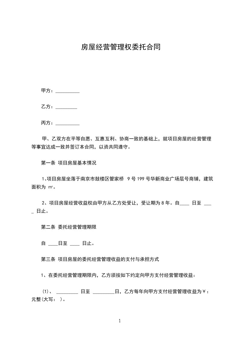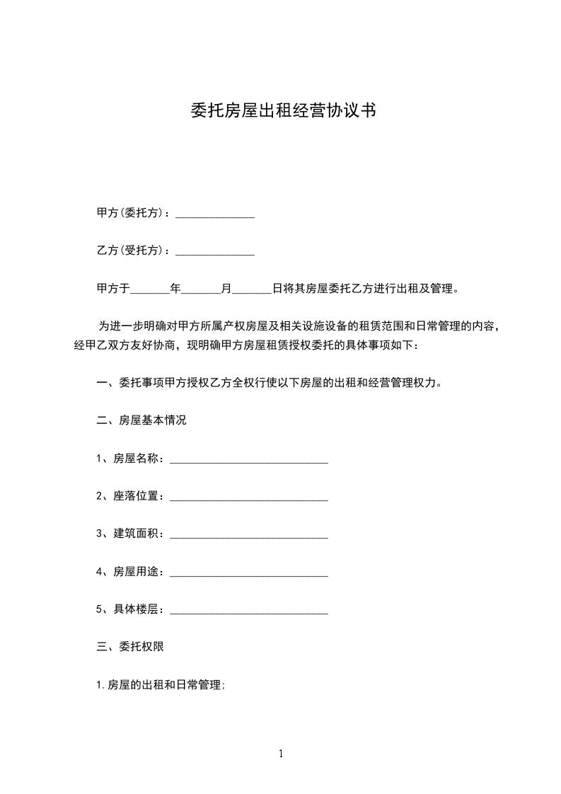 一、委托事项甲方授权乙方全权行使以下房屋的出租和经营管理权力。