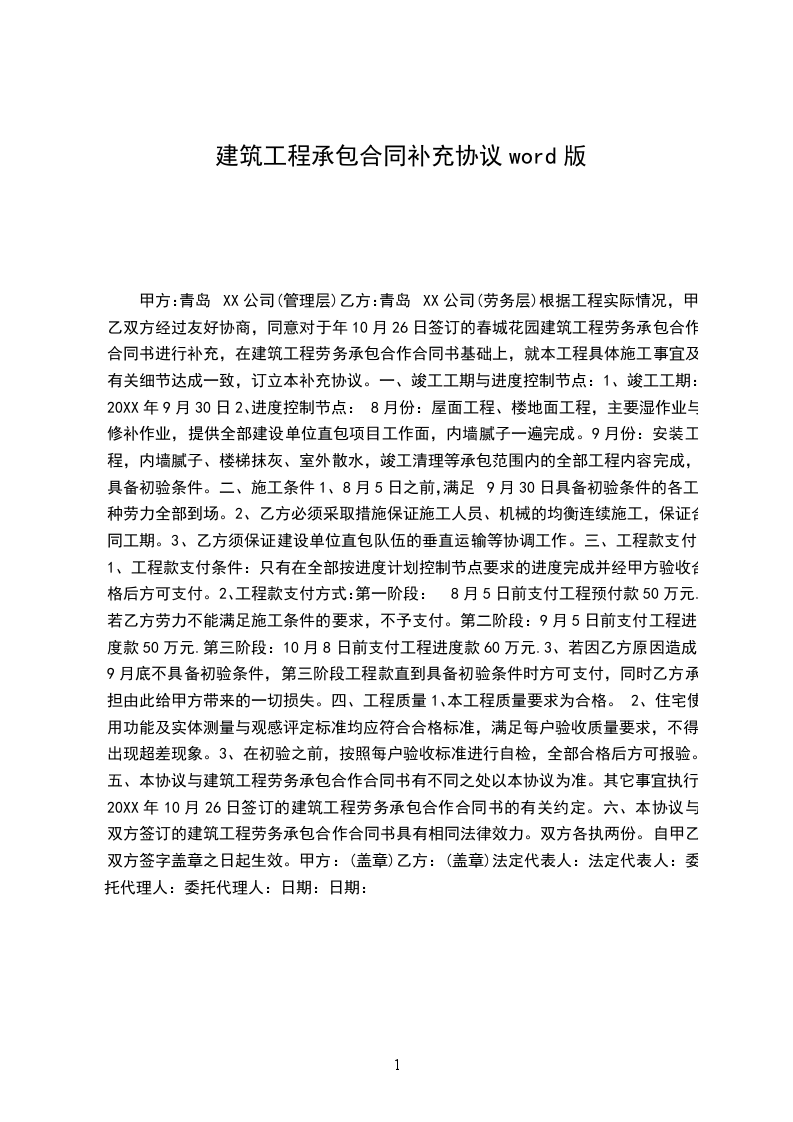 鉴于甲乙双方于[签订日期]签订了《建筑工程总承包合同》(以下简称“原合同”),为了进一步明确双方的权利和义务,补充原合同的相关条款,经双方友好协商,达成以下补充协议: