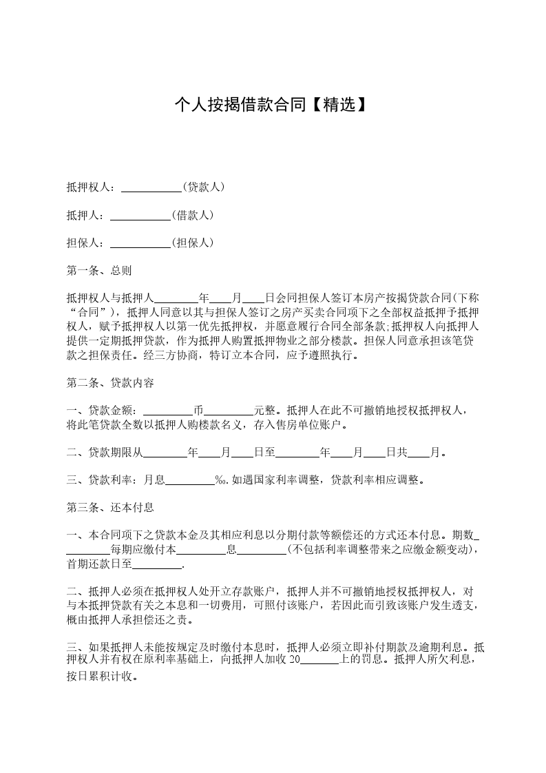 篇1《房屋按揭借款合同》