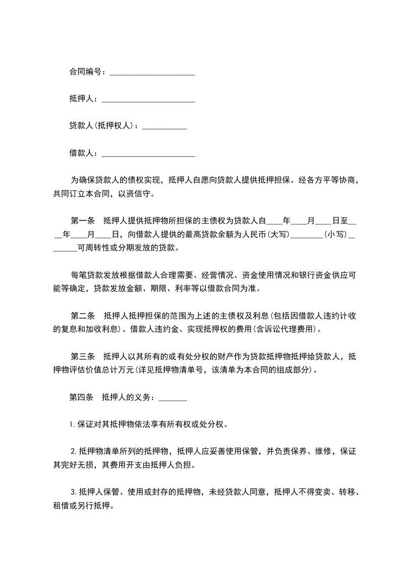 经抵押人与抵押权人平等、友好协商,根据《中华人民共和国民法典》的相关规定,一致达成如下合同条款:
