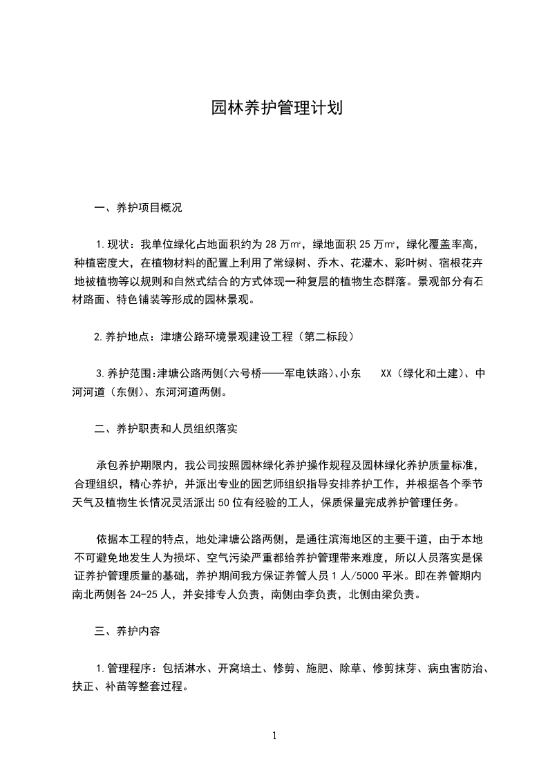 (详细列出园林养护的具体范围和各项工作的标准要求)