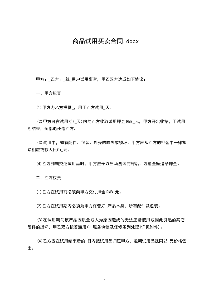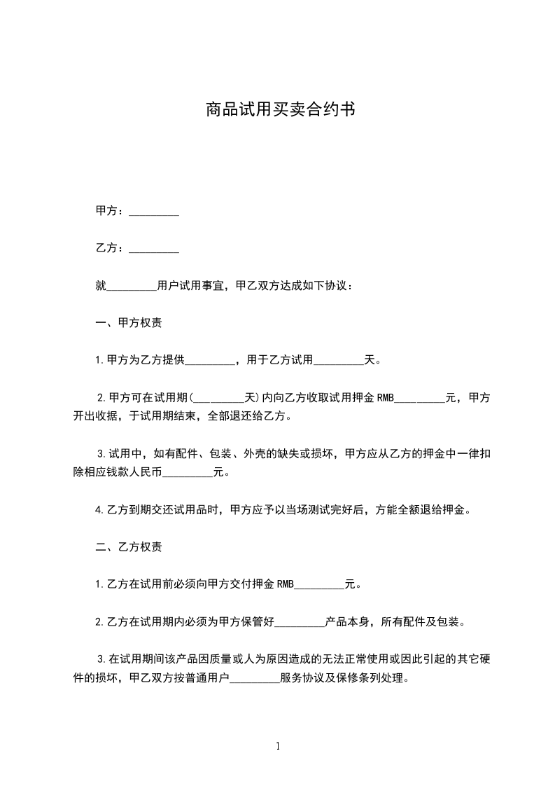 1.乙方在试用前必须向甲方交付押金RMB_________元。