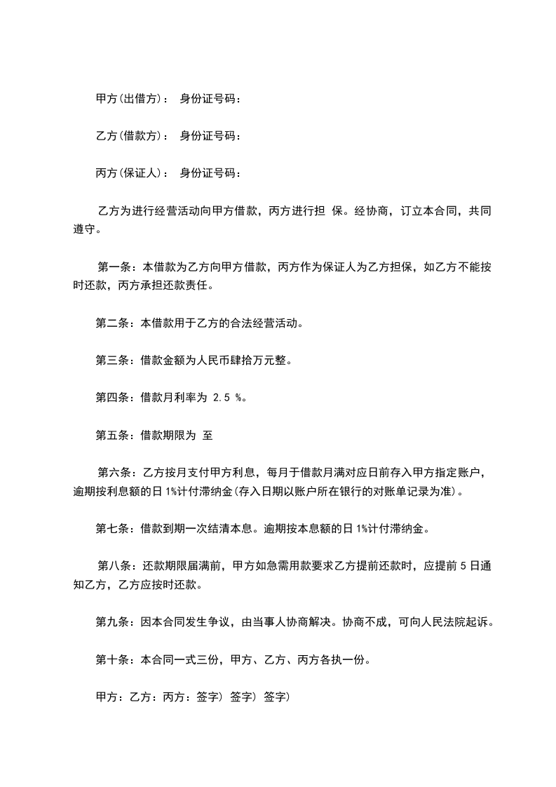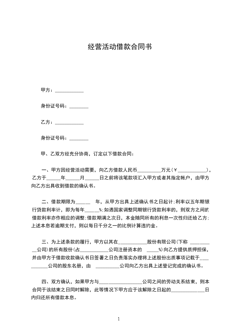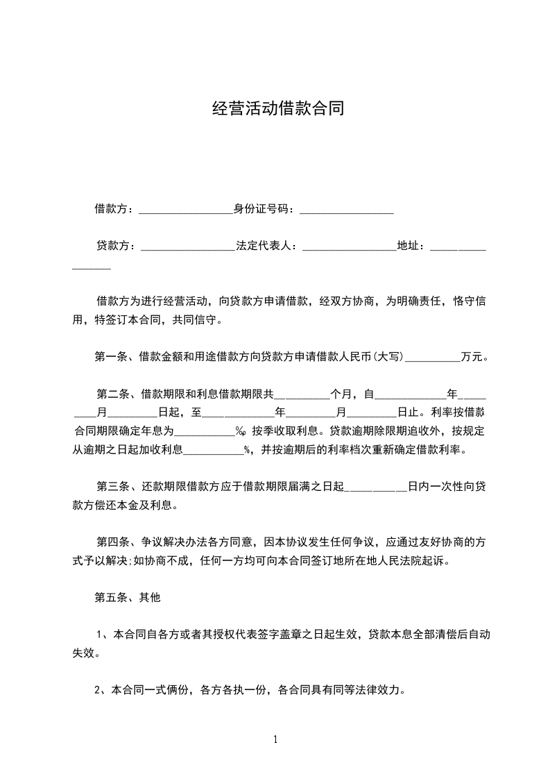 借款方为进行经营活动,向贷款方申请借款,经双方协商,为明确责任,恪守信用,特签订本合同,共同信守。