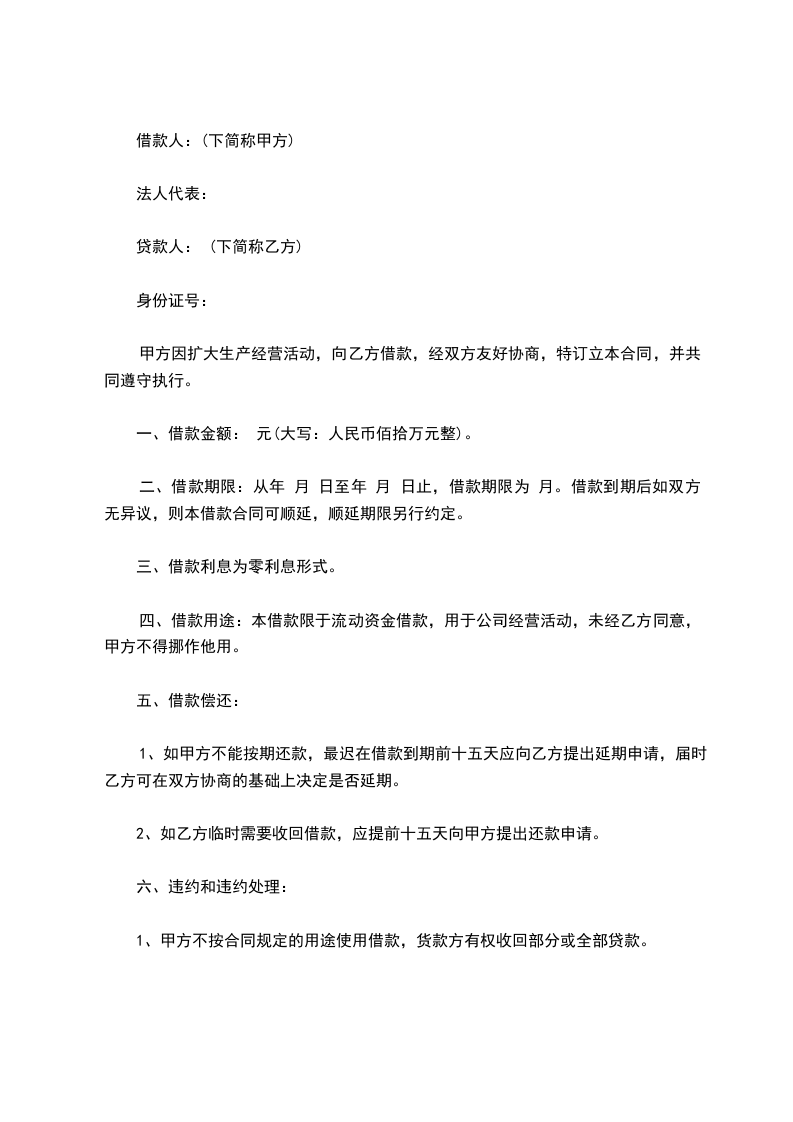 第一条、借款金额和用途借款方向贷款方申请借款人民币(大写)__________万元。