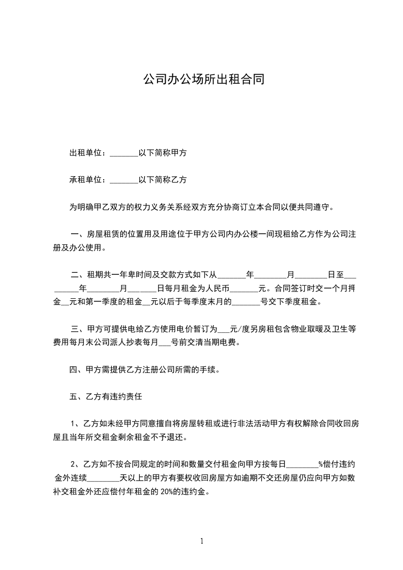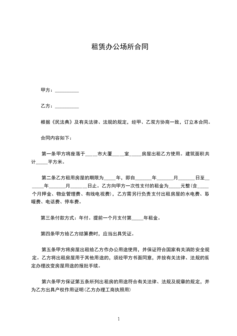 1. 办公场所位于____________________,建筑面积为______平方米,具体楼层及房间号为____________________。